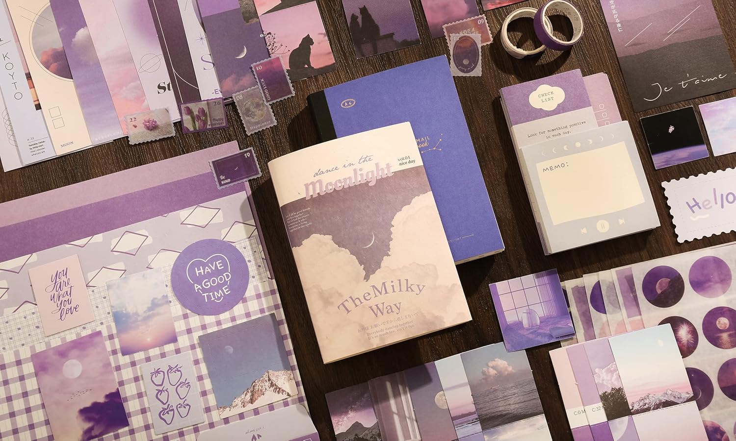 - This scrapbook supply comes with assorted vintage paper in various designs. Their classic prints include plants, flowers, figures, architecture, sky, clouds, moon, ocean, mountain, letter sheet, and so on. These look very classic and a purple aesthetic scrapbook journal kit, not easy to go out of date, bringing you enjoyment. These different series and a sufficient quantity of washi paper stickers can meet your daily use and replacement.